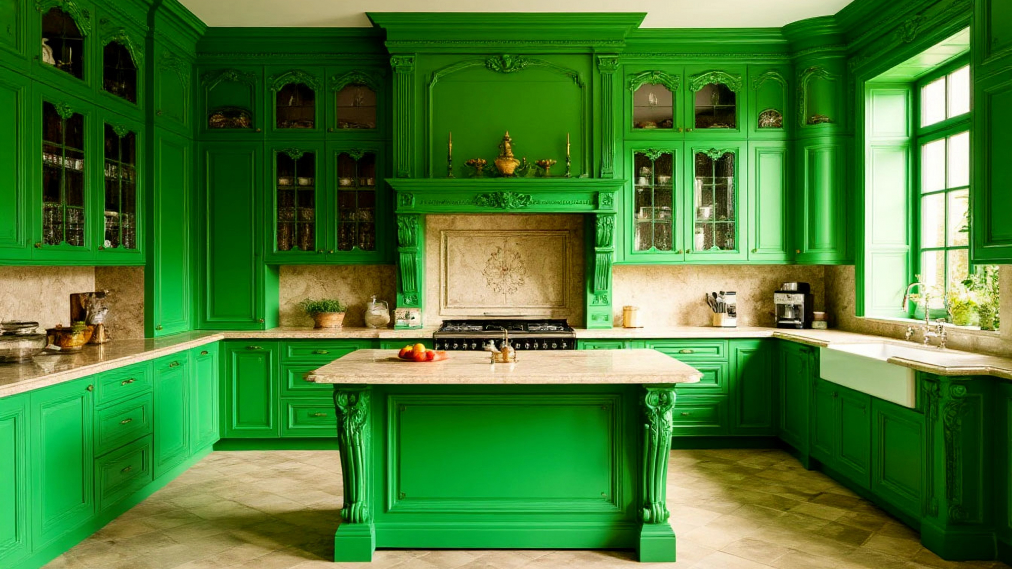 Особое внимание уделено декоративным элементам. Резьба, декоративные молдинги, лепнина и изысканные ручки придают фасадам роскошный вид, а гармоничные пропорции форм и цветов создают визуальное равновесие. Зеленый оттенок фасадов подчеркивает природную свежесть, мягко контрастируя с золотыми или бронзовыми акцентами на декоративных элементах. Кухни в стиле барокко особенно ценятся за возможность сочетать визуальную роскошь с комфортом и практичностью, а "Гиацинт" полностью раскрывает этот потенциал.